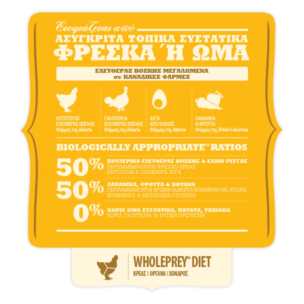 - Όλα τα προϊόντα, παραδίδονται καθημερινά φρέσκα ή ωμά, σε WHOLEPREY™ αναλογίες, από τοπικές φάρμες.