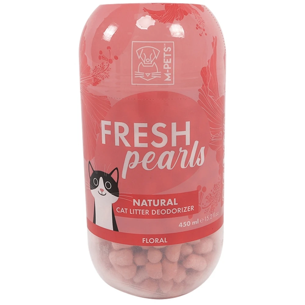 Αρωματικό για την άμμο γάτας FRESH Pearls Natural Litter Deodoriser – Floral 450 ml.Φυσικό & Ασφαλές πιστοποιημένο M-PETS FRESH PEARLS απορροφά, αιχμαλωτίζει και εξουδετερώνει τις οσμές. Εργαστηριακά αποδεδειγμένο ότι έχει αντιβακτηριακές ιδιότητες και αποσβένει αποτελεσματικά ολόκληρο το κουτί απορριμμάτων γάτας. Πασπαλίστε εύκολα πάνω από κάθε τύπο απορριμμάτων γάτας.