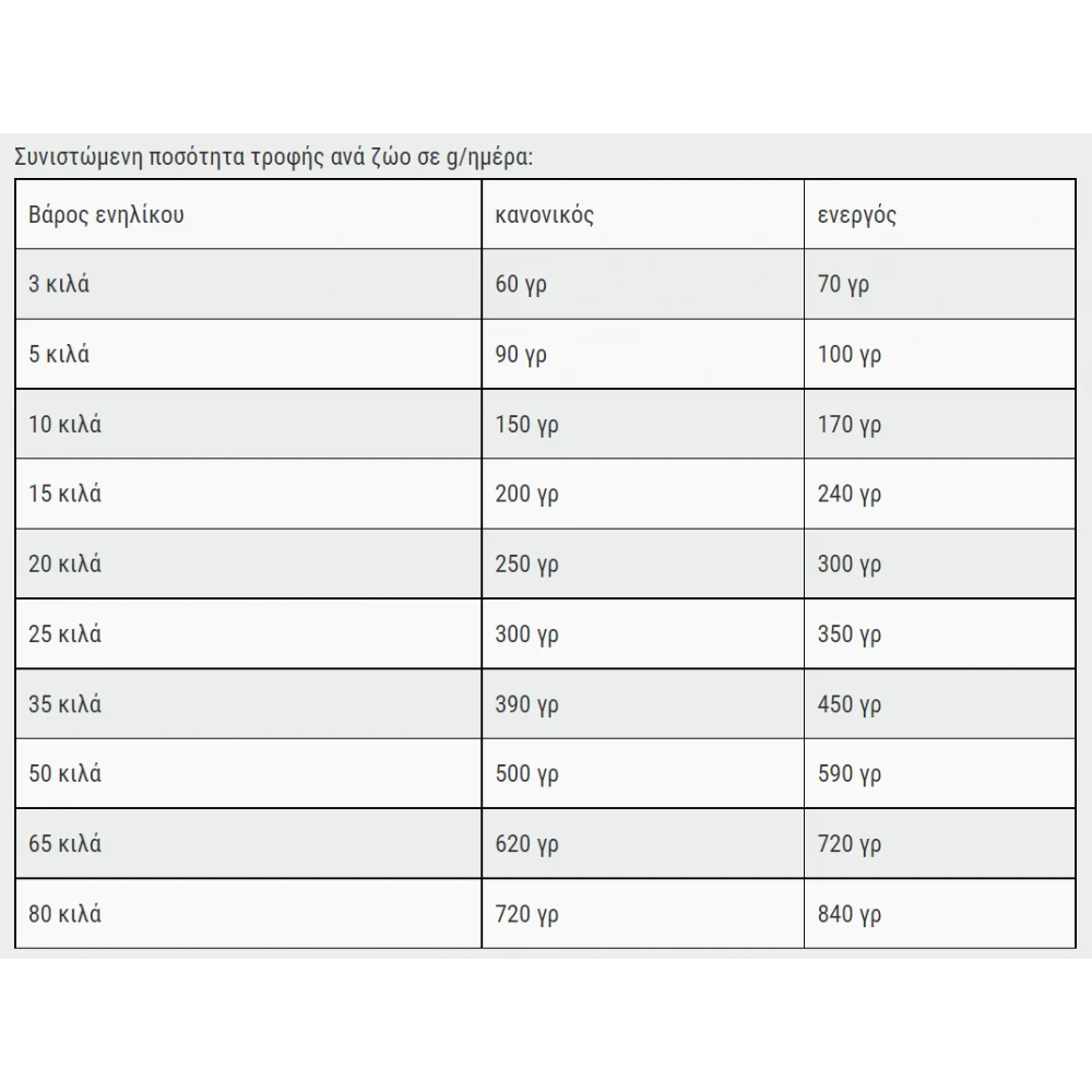 Για ενήλικους σκύλους με φυσιολογικά επίπεδα δραστηριότητας