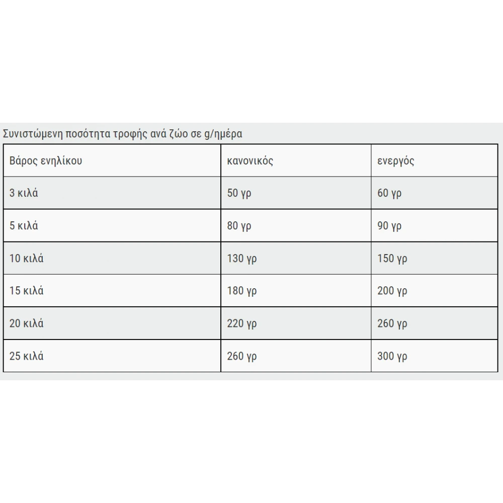 - Χωρίς καλαμπόκι, σιτηρά, σόγια και προϊόντα γάλακτος.