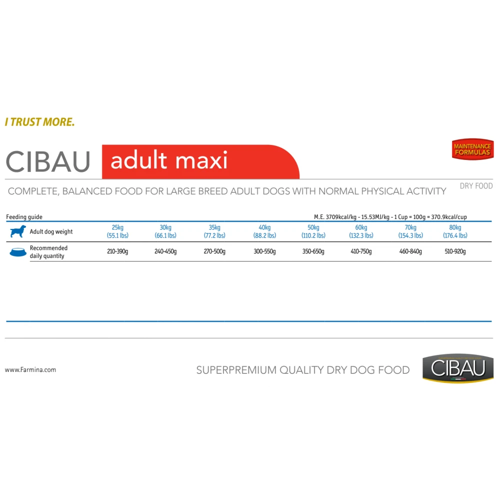 Η super premium Cibau Adult Maxi είναι μία πλήρης τροφή για ενήλικους σκύλους με κανονικό επίπεδο δραστηριότητας.