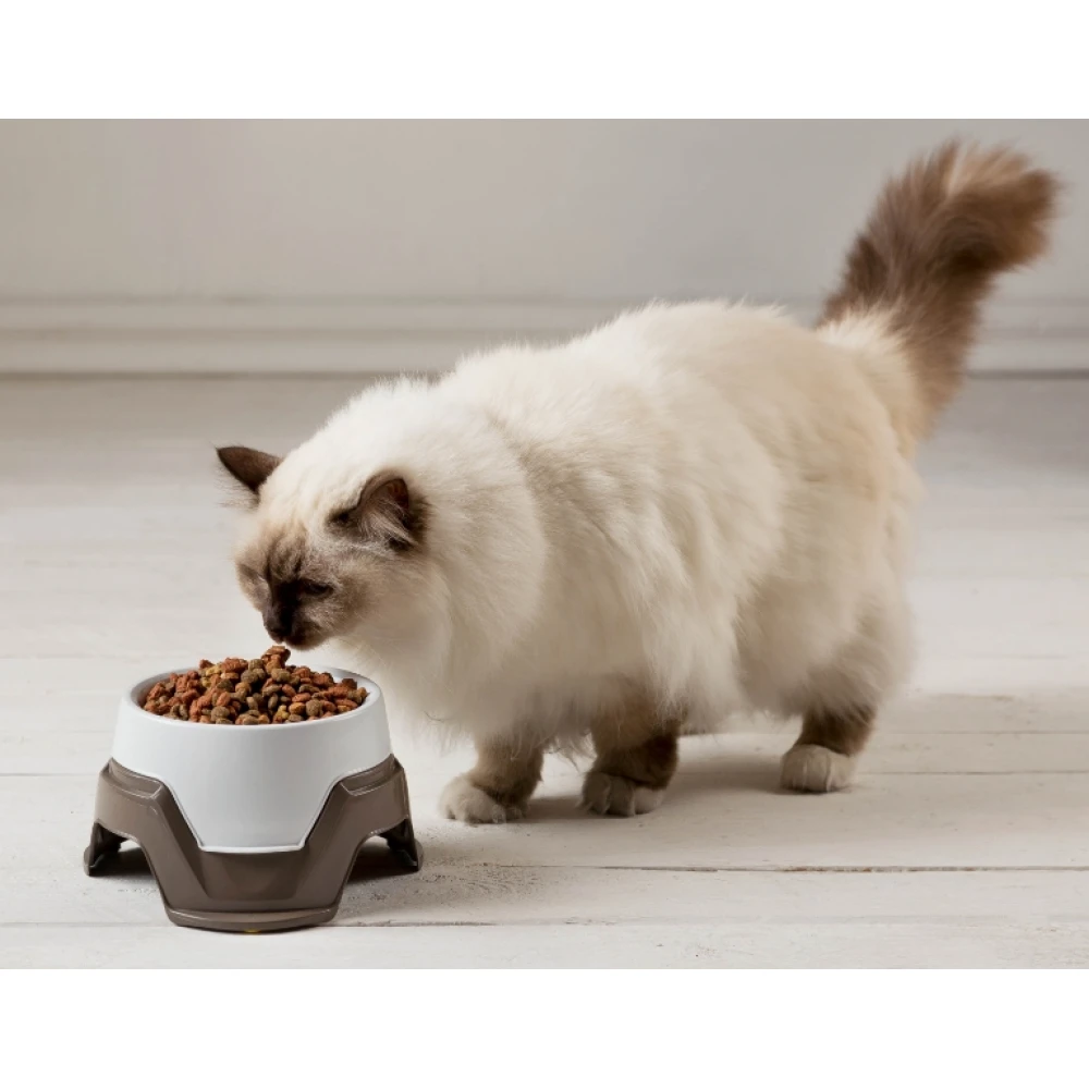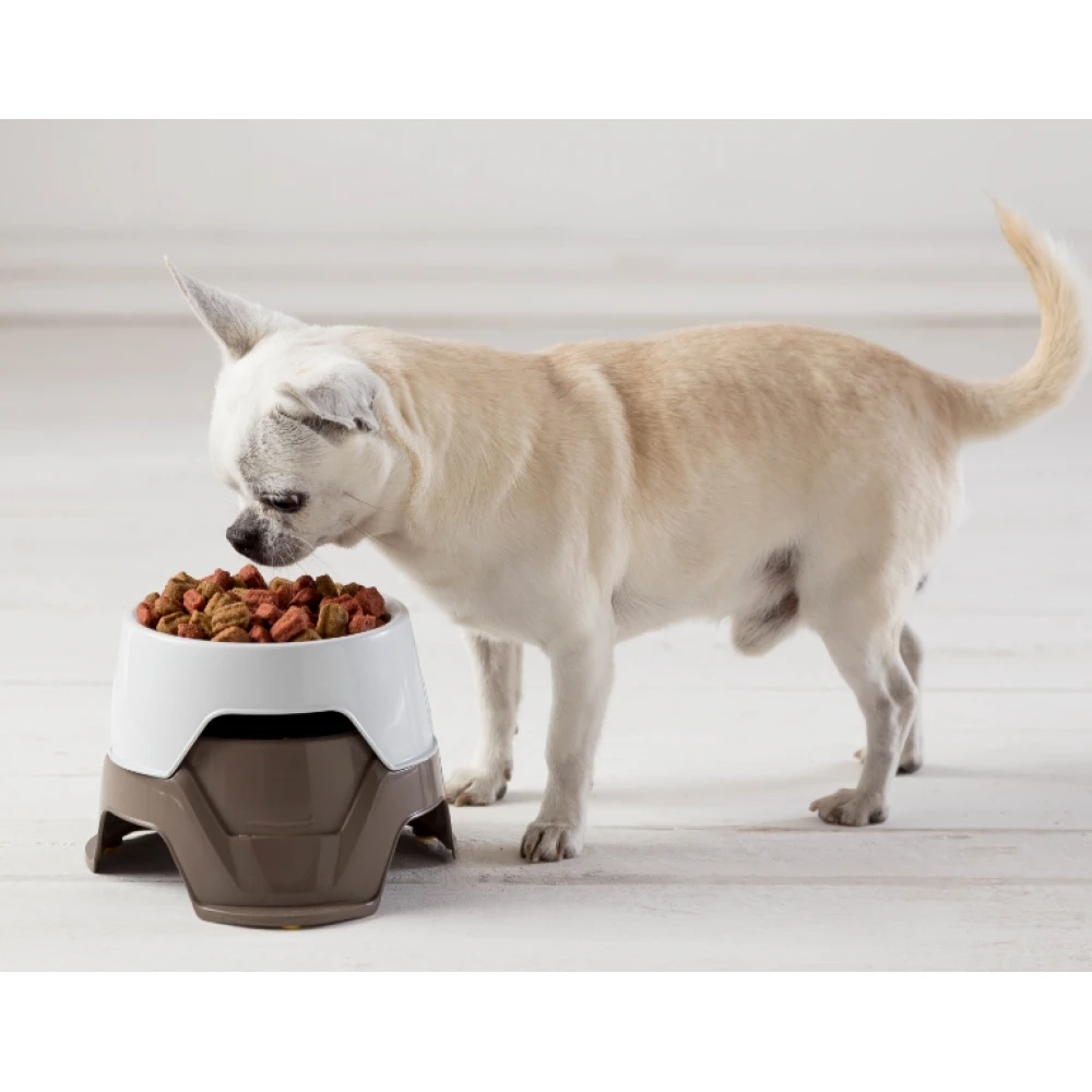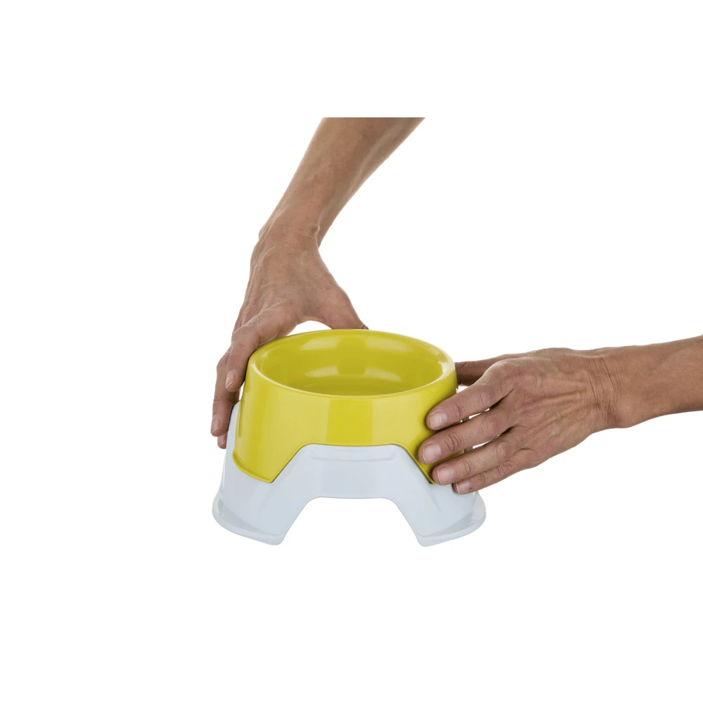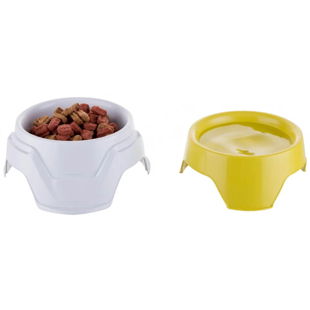 Διπλό αντιολισθητικό μπολ για σκύλους και γάτες με επιλογή 2 υψομετρικών επιπέδων. Βολικό για μεταφορά και αποθήκευση τροφής εκτός σπιτιού. Συνδυαστική χωρητικότητα δοχείων (0.65Lt + 0.36Lt ) =1.1Lt.