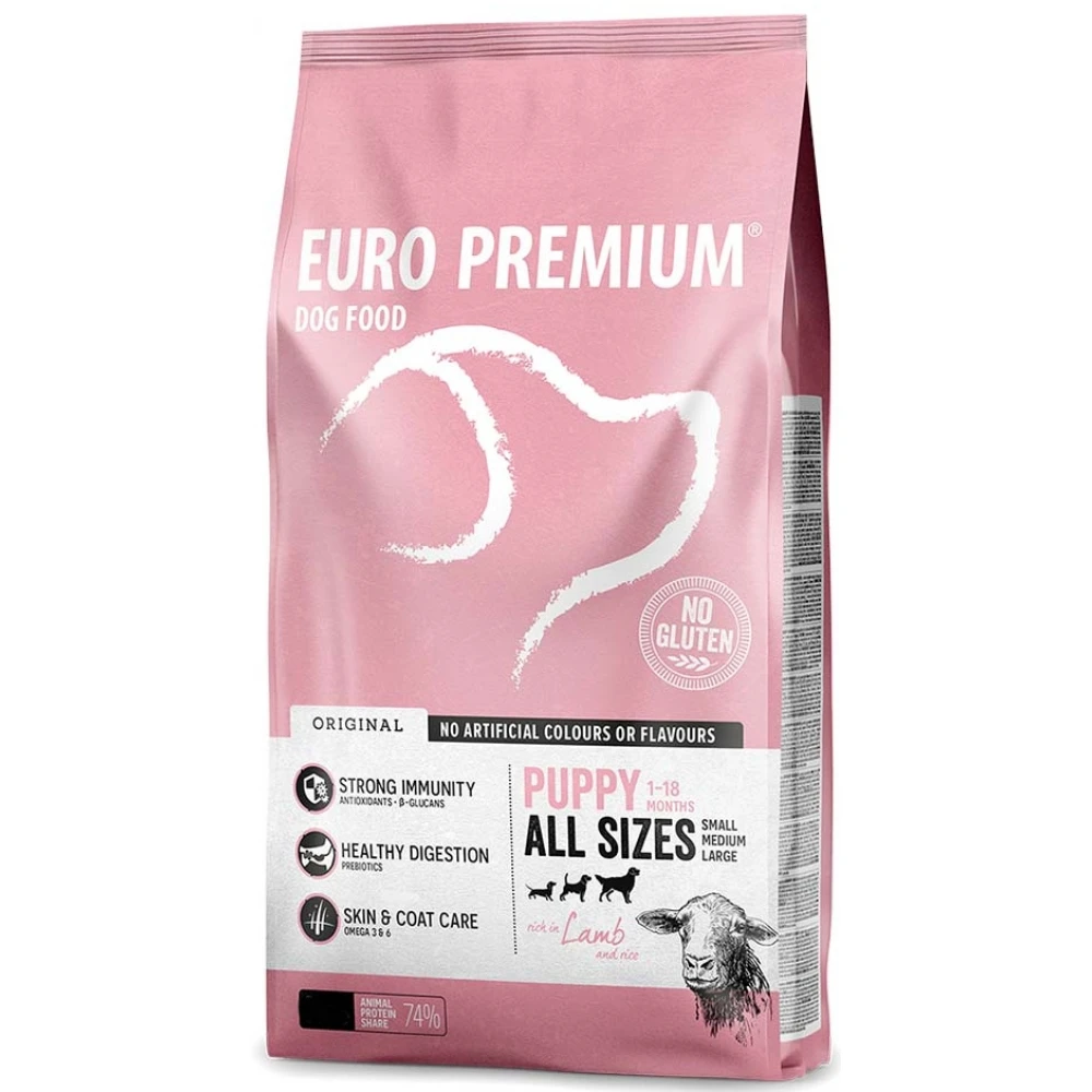 Super premium ξηρά τροφή σκύλου Euro premium All Sizes Puppy Lamb & Rice 3kg, με αρνί, για κουτάβια όλων των μεγεθών και φυλών.