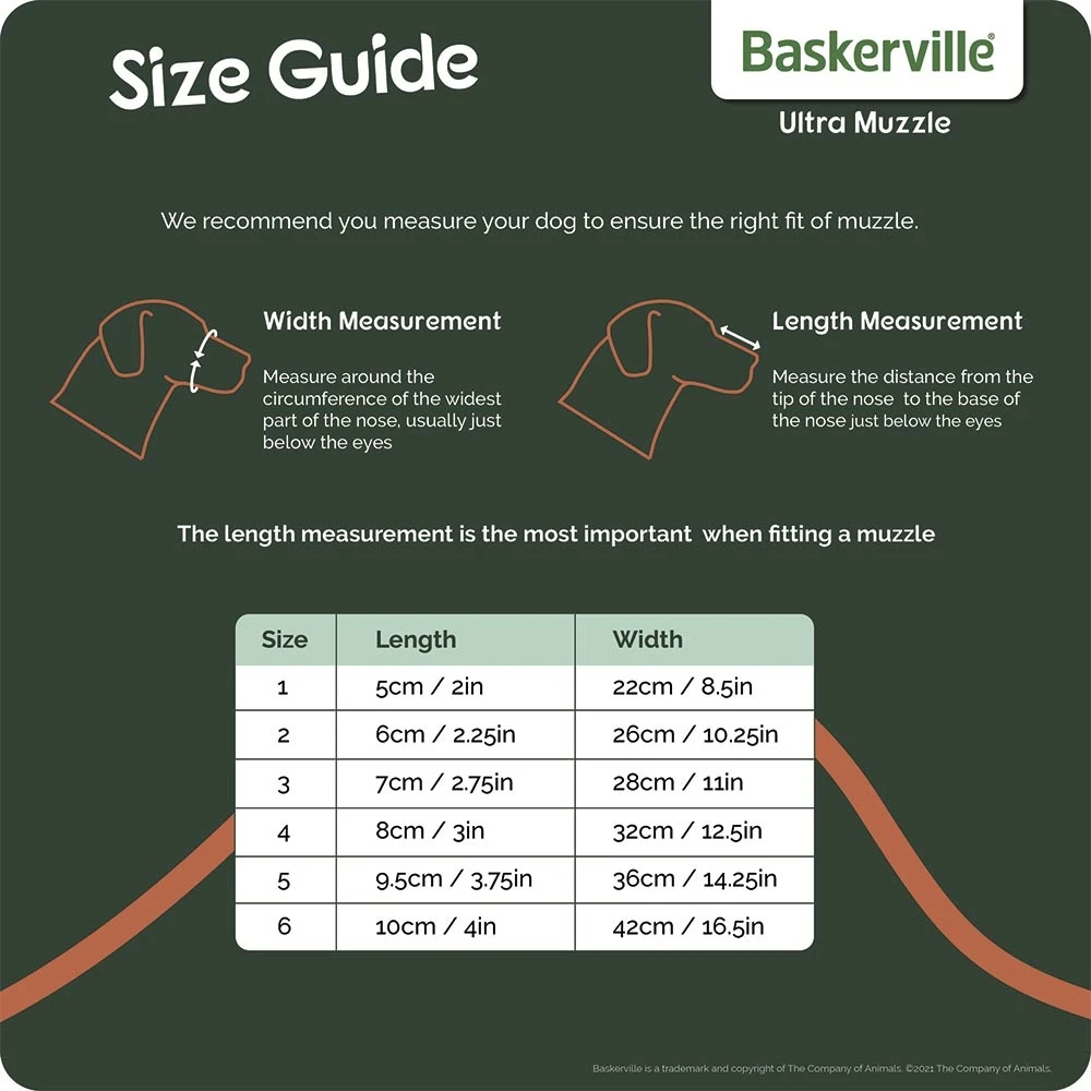 ΦΙΜΩΤΡΟ ΣΚΥΛΟΥ BASKERVILLE ULTRA MUZZLE No6 10x42cm (μήκος x Διάμετρος).Το Baskerville Ultra Muzzle σχεδιάστηκε από τον Dr Roger Mugford για να προστατεύσει από τα δαγκώματα αλλά όχι εις βάρος της ευημερίας του ή της ευτυχίας του. Το Ultra Muzzle έχει μια εύκαμπτη εφαρμογή για σκύλους με πλατιές μύτες και επίσης επιτρέπει στο σκύλο να τρώει ενώ το φοράει.