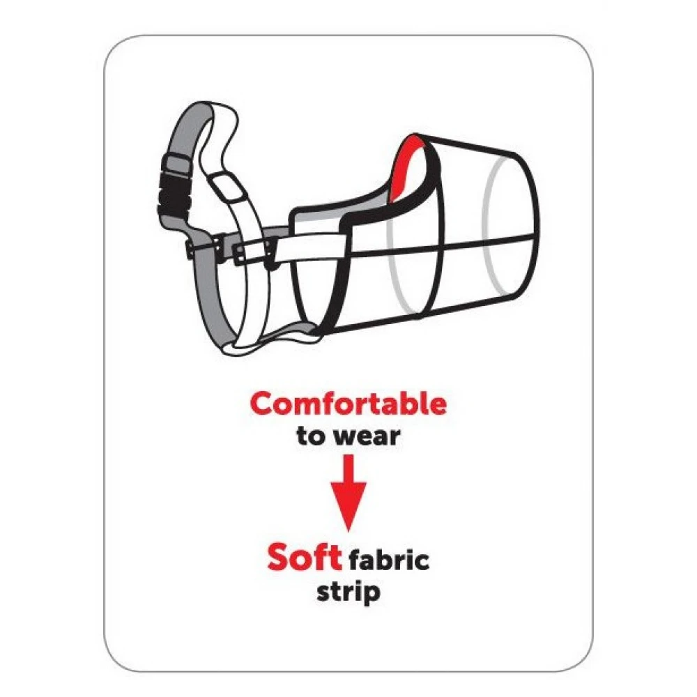 Πόσο ασφαλές είναι;Πολύ! Η εργονομικά σχεδιασμένη ταινία ασφαλείας διασφαλίζει ότι το στόμιο θα παραμείνει πάντα ασφαλές στη θέση του και διαθέτει δύο επιπλέον σημεία ασφαλούς στερέωσης. Ο βρόχος στο κάτω μέρος συνδέεται με το κανονικό περιλαίμιο του σκύλου σας και υπάρχει ένας προαιρετικός, αφαιρούμενος ιμάντας ασφαλείας πάνω από το κεφάλι.