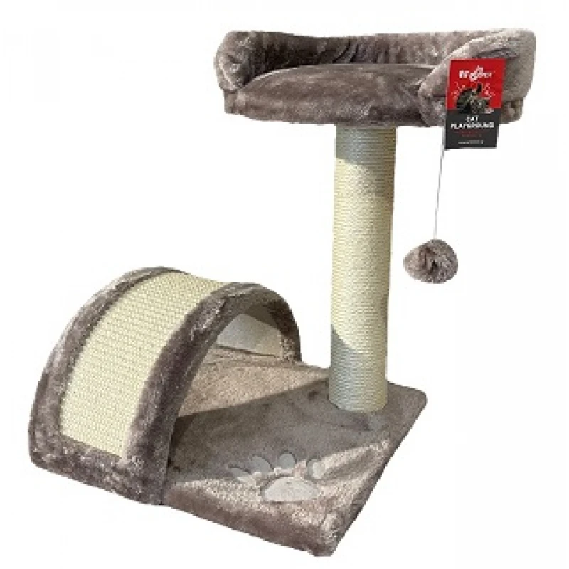 Ονυχοδρόμιο – Γατόδεντρο για γάτες με κρεμαστό παιχνίδι και τούνελ ξεκούρασης.