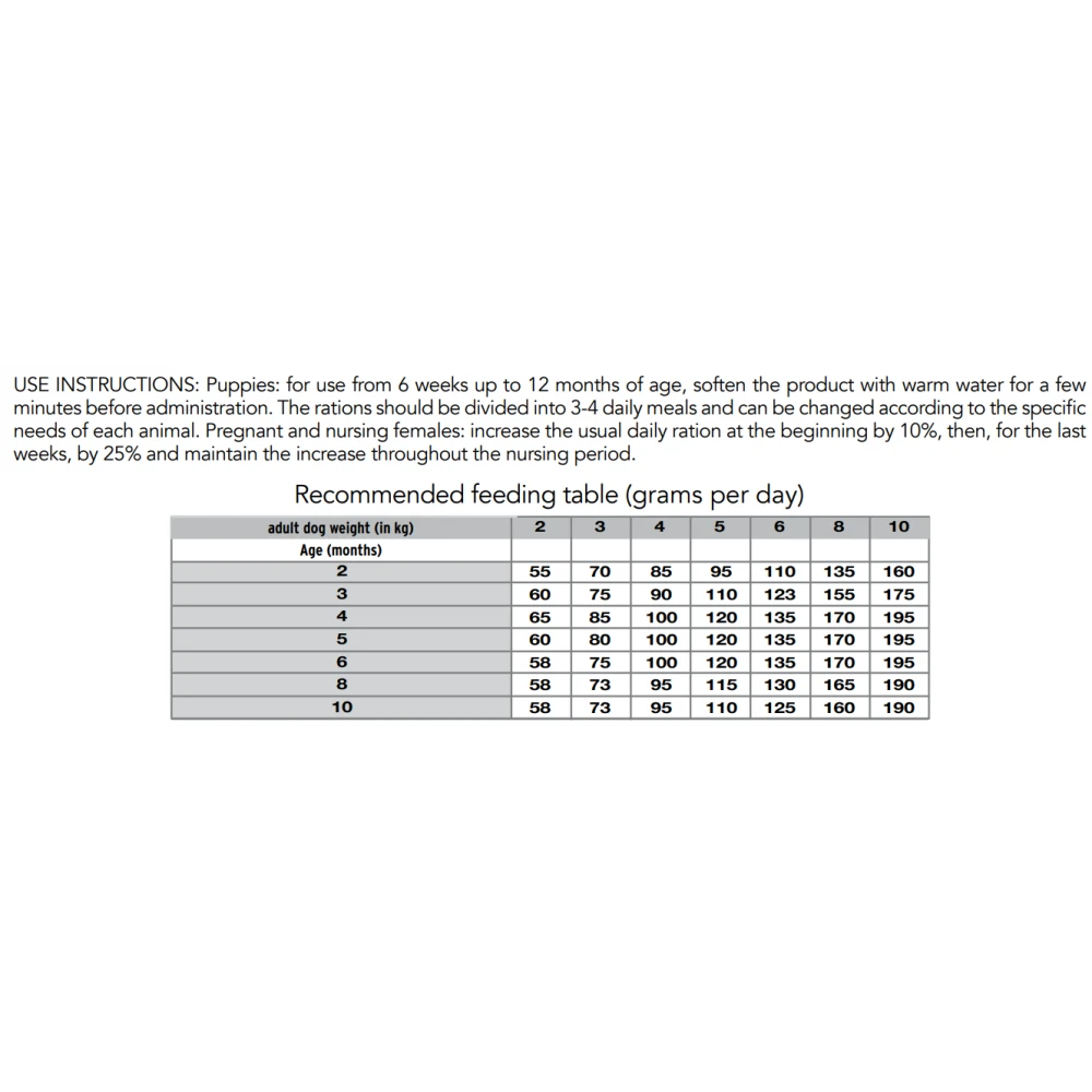 Έχει σχεδιαστεί για την καθημερινή διατροφή των κουταβιών από 6 εβδομάδων έως 12 μηνών μικρόσωμων φυλών.