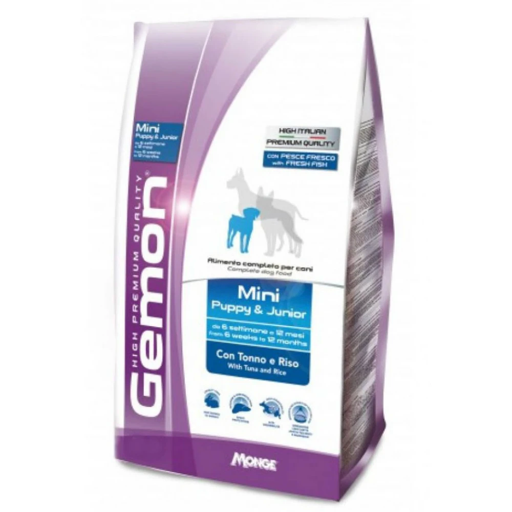 Gemon Mini Puppy & Junior Tuna & Rice 3kg, πλήρης τροφή σκύλου με τόνο και το ρύζι για κουτάβια και νεαρούς σκύλους μικρών φυλών.