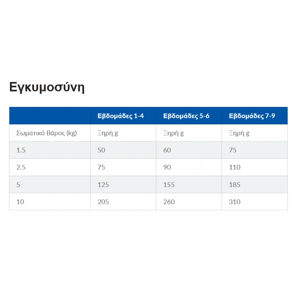 Τροφή κατάλληλη για κουτάβια μικρόσωμων και νανόσωμων φυλών από τον απογαλακτισμό μέχρι την ηλικία του 1 έτους και σκύλες σε εγκυμοσύνη και γαλουχία.