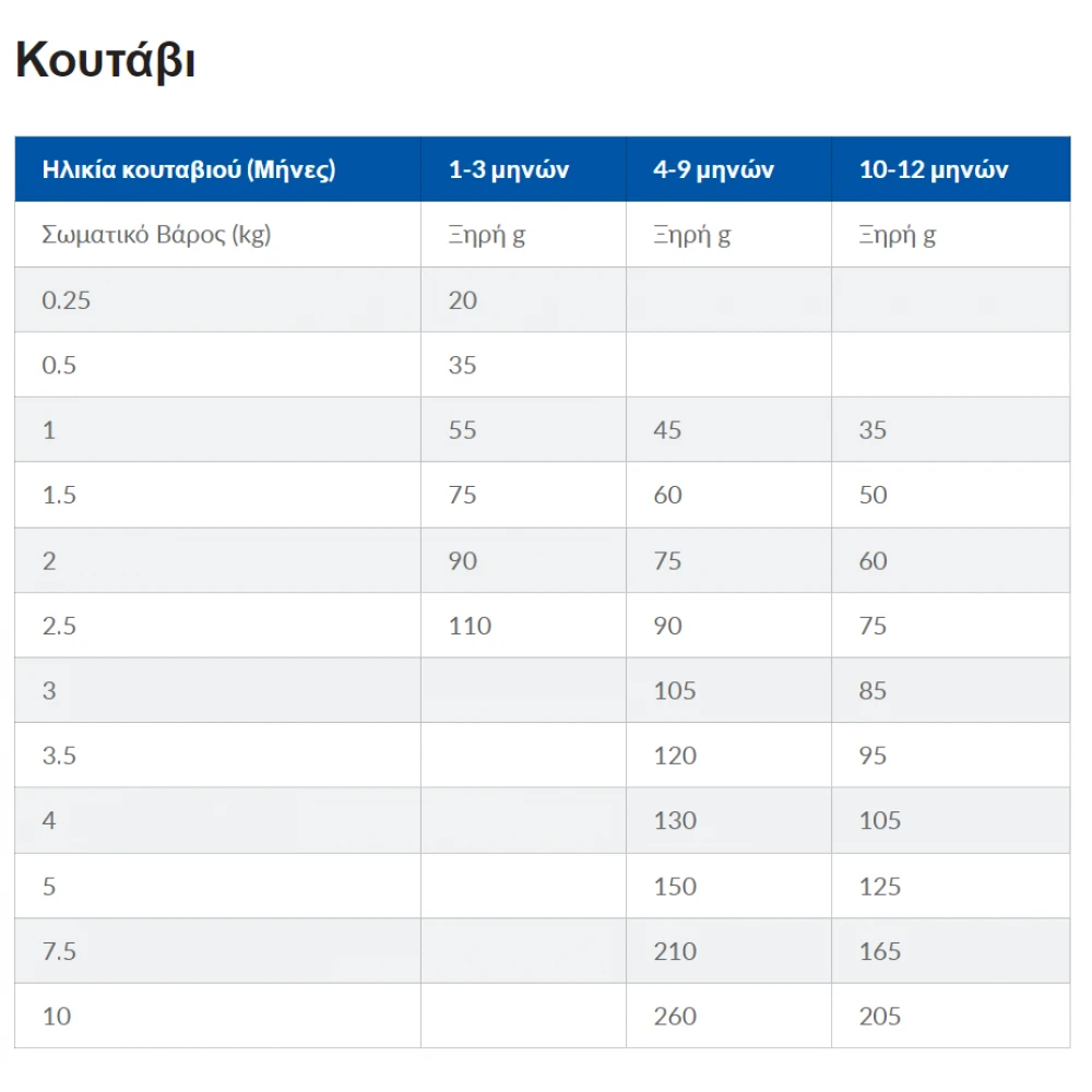 Συστήνεται για Κουτάβια έως 1 έτους και σκυλίτσες σε εγκυμοσύνη ή γαλουχία που ζυγίζουν έως 10 kg σε πλήρη ανάπτυξη.