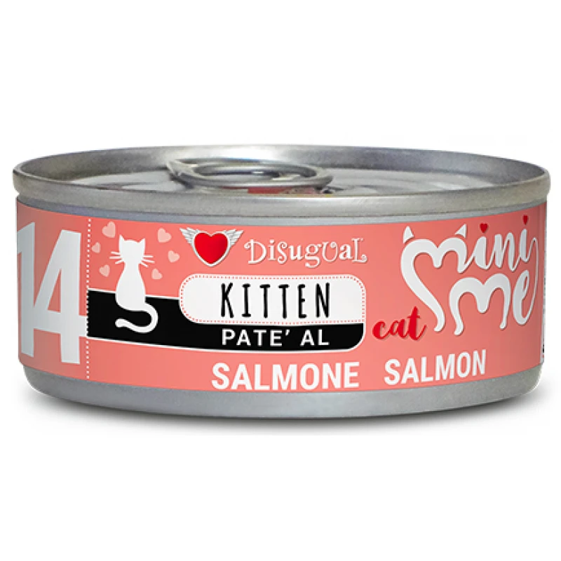 Υγρή τροφή – Κονσέρβα Γάτας Disugual Mini Me Cat – KITTEN 14 Pate Με Σολομό 85gr 12Τμχ .Πλήρης τροφή για όλα τα στάδια ζωής της γάτας. Με κρέας ή ψάρι προερχόμενο από το πλεόνασμα παραγωγής που προορίζεται για ανθρώπινη κατανάλωση.