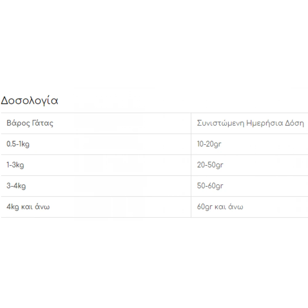 Μεταβολιστέα ενέργεια: 800/kcal ανά κιλό (56kcal ανά μερίδα)