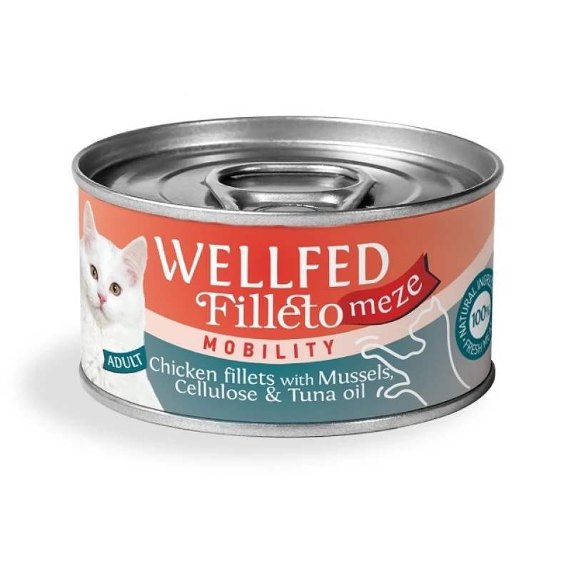 Υγρή τροφή Γάτας Wellfed Cat Filleto Meze Adult Mobility Chicken, Mussels & Cellulose 70gr.