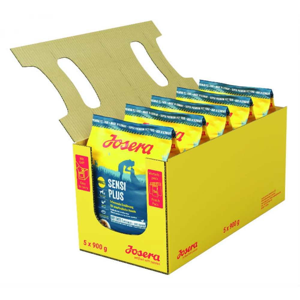 Super premium Ξηρά τροφή σκύλου Josera Sensi Plus 4,5kg με Πάπια.Ισορροπημένη διατροφή για ευαίσθητους σκύλους.Με πάπια. Συνταγή χωρίς γλουτένη (gluten-free).