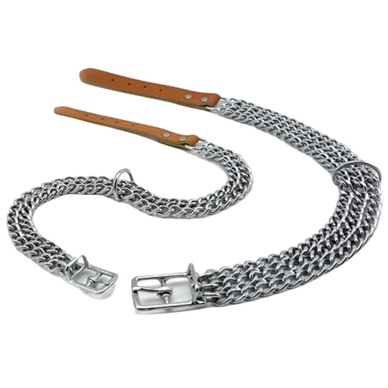 Περιλαίμιο σκύλου με αλυσίδες (2 σειρές) και δερμάτινο κούμπωμα. Δεν χάνει την λάμψη του, είναι υψηλής ποιότητας, ανθεκτικό και αντιμικροβιακό.