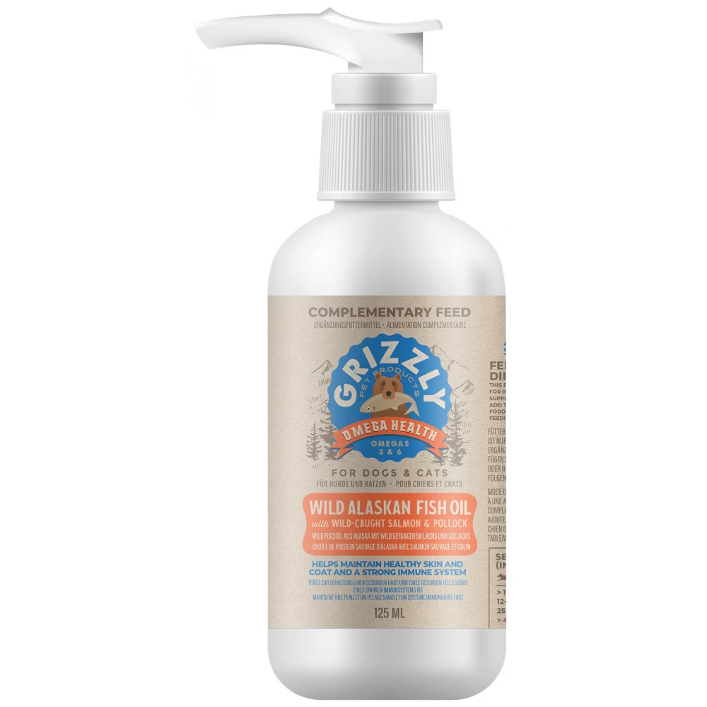 Το Grizzly Salmon Oil έχει ήπια γεύση, όπως το φιλέτο φρέσκου σολομού. Είναι νόστιμο για τον σκύλο ή την γάτα σας και η καθημερινή χορήγηση είναι ο απόλυτα φυσικός τρόπος να ενισχύσετε την καλή υγεία του κατοικίδιου σας προσφέροντας του μακρά και ευτυχισμένη ζωή. Εύκολο στη χρήση – η βολική αντλία – dispenser δίνει την σωστή ποσότητα κάθε φορά.