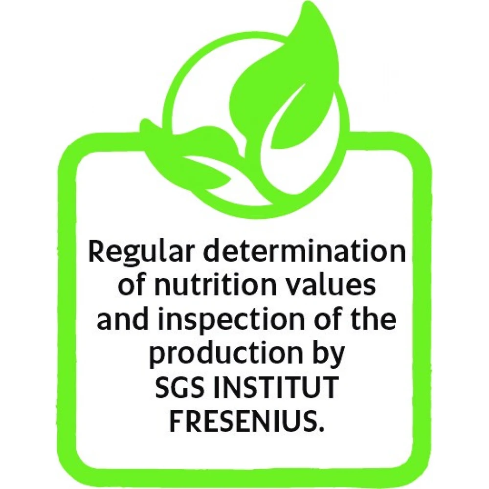 Αναλυτικά συστατικά: Ακατέργαστη πρωτεΐνη 86,4%, ακατέργαστες ινώδεις ουσίες 0,5%, ακατέργαστες λιπαρές ουσίες 4,0%, ακατέργαστη τέφρα 3,3%, υγρασία 13,0%, ενέργεια 391 kcal/100g — 1636 kJ/100g (Ο υπολογισμός της ενέργειας βασίζεται στο DIN EN 16967:2017).
