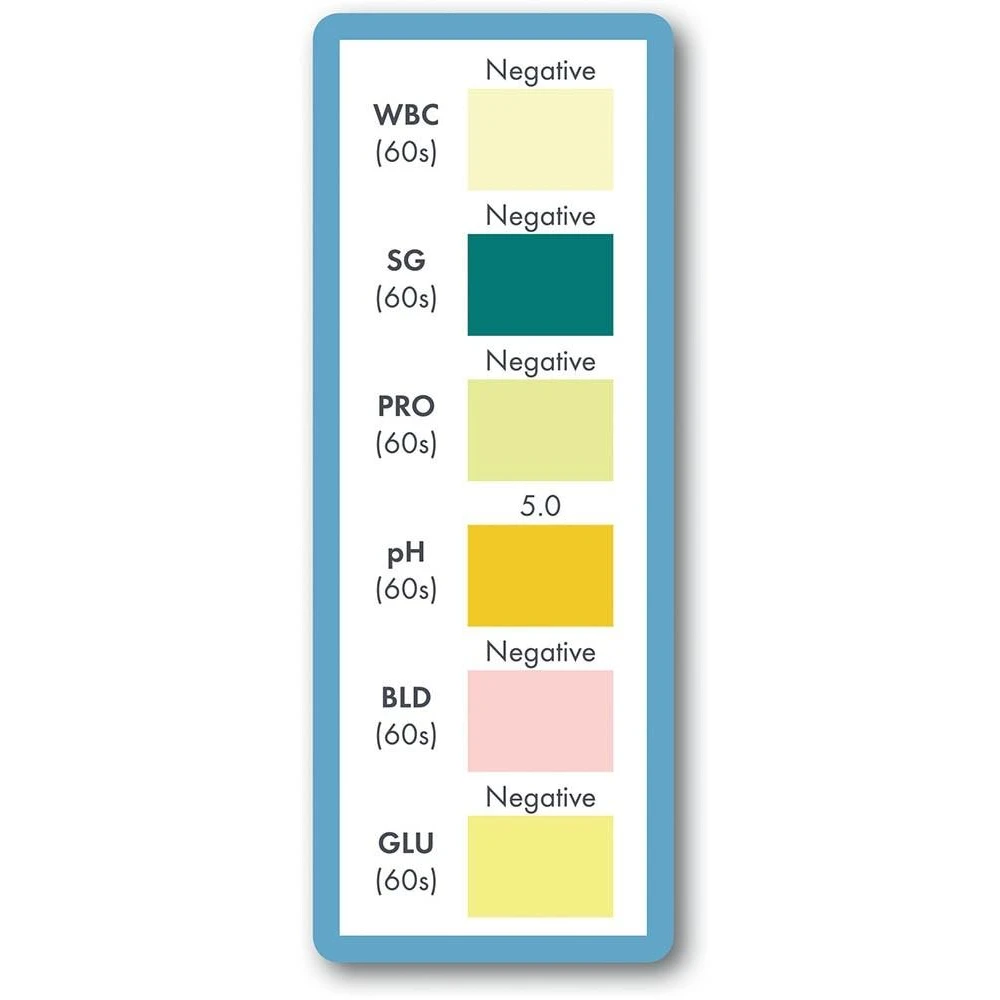 Παρέχει πληροφορίες σχετικά με τη συγκέντρωση αίματος (WBC & BLD), ειδικό βάρος ούρων (SG), πρωτεΐνη (PRO), τιμή pH (pH) και γλυκόζη (GLU) στα ούρα του κατοικίδιου ζώου σας.