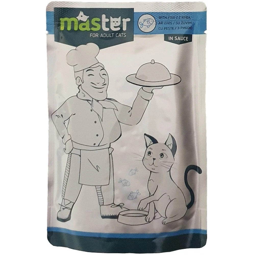 Master Adult Cat Fish in Sauce 80gr 24τμχ (20 + 4 Δώρο). Master Adult Cat Κομματάκια Ψαριού Σε Σάλτσα 80g.