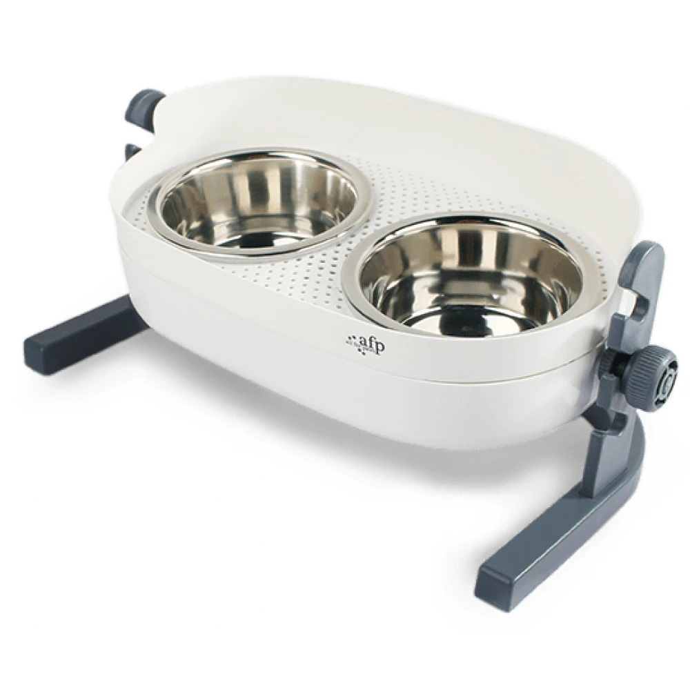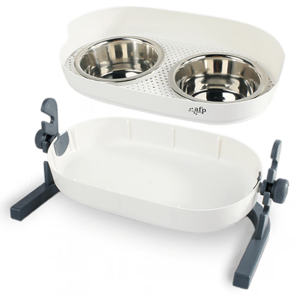 Μπολ Σκύλου 3 σε 1 Double Dinner Afp M 2x350ml. Ανθεκτική διπλή ταΐστρα. Η τροφή παραμένει στην κορυφή και το νερό στο κάτω μέρος. Δίνει στο κατοικίδιό σας ψηλή θέση σίτισης το οποίο βοηθάει στην πέψη και τις αρθρώσεις. Μπορείτε να προσαρμόσετε επίσης τη γωνία του μπολ ώστε να ταιριάζει καλύτερα στις ειδικές ανάγκες των κατοικίδιων. Είναι εύκολο να συναρμολογηθεί και να καθαριστεί. Διπλώματα ευρεσιτεχνίας που εκκρεμούν.