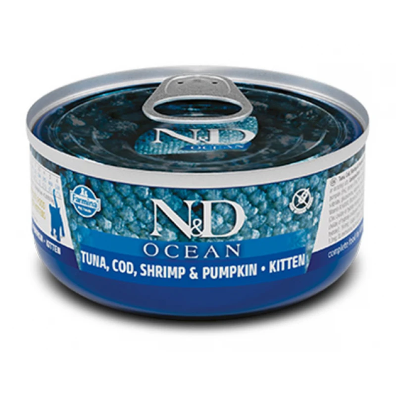 N&d Cat Tuna, Cod, Shrimp & Pumpkin Kitten Wet Food 70gr (12τμχ).