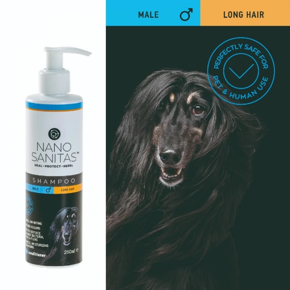 Nano Sanitas Σαμπουάν και conditioner για Αρσενικούς Μακρύτριχους Σκύλους 250ml.