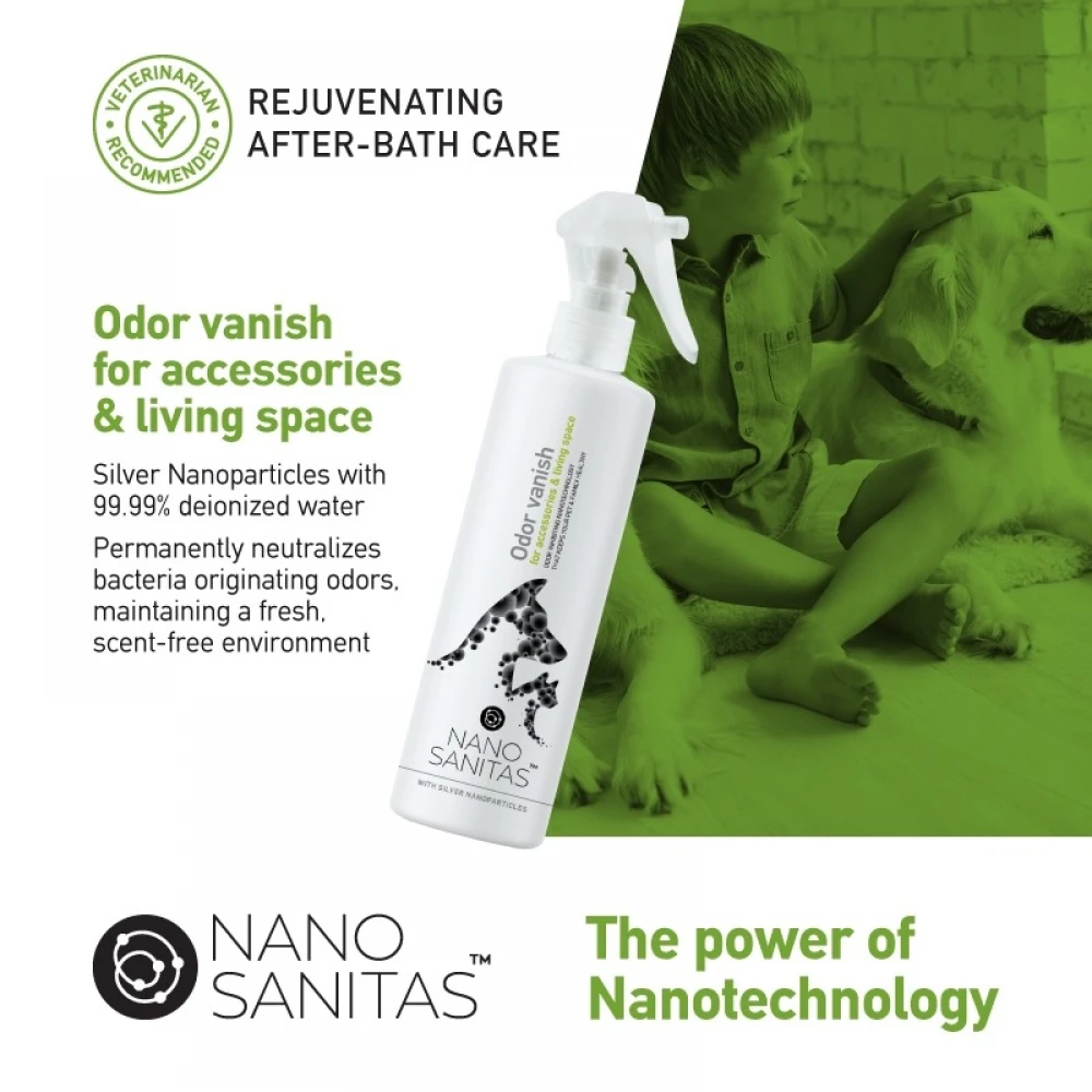 Nano Sanitas Spray Odor Vanish 250ml.Αποσμητικό Σπρέι Χώρου για τα Αξεσουάρ και το Χώρο του Κατοικιδίου.