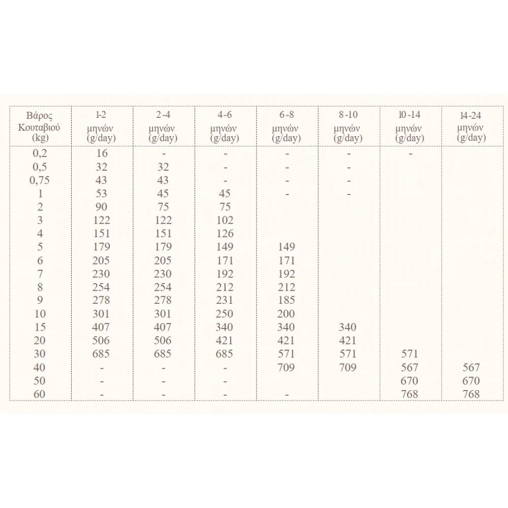 - Πάντα με πρώτο συστατικό το κρέας υψηλής βιολογικής αξίας, με πλούσια σύνθεση από λαχανικά και βότανα.