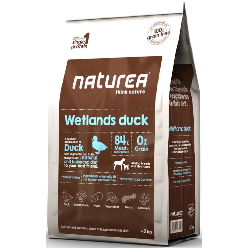Super premium ξηρά τροφή σκύλου Naturea Grain Free Wetlands Duck 2kg με πάπια, χωρίς δημητριακά για ενήλικους σκύλους όλων των φυλών.