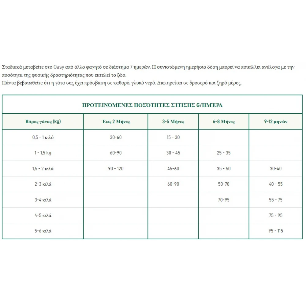 Oasy Cat Kitten Chicken 1,5kg. Πλήρης τροφή για κατοικίδια για γατάκια ηλικίας από 1 έως 12 μηνών και έγκυες και θηλάζουσες γάτες, με κοτόπουλο.