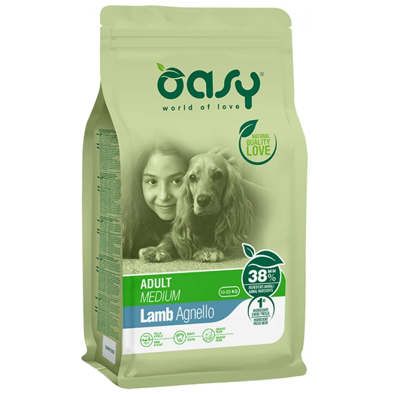 Oasy Dry Dog Adult Medium Lamb .Πλήρης τροφή για κατοικίδια για ενήλικους σκύλους μεσαίων φυλών ηλικίας ενός έτους και άνω με Αρνί. ΚΑΤΆΛΛΗΛΟ ΓΙΑ