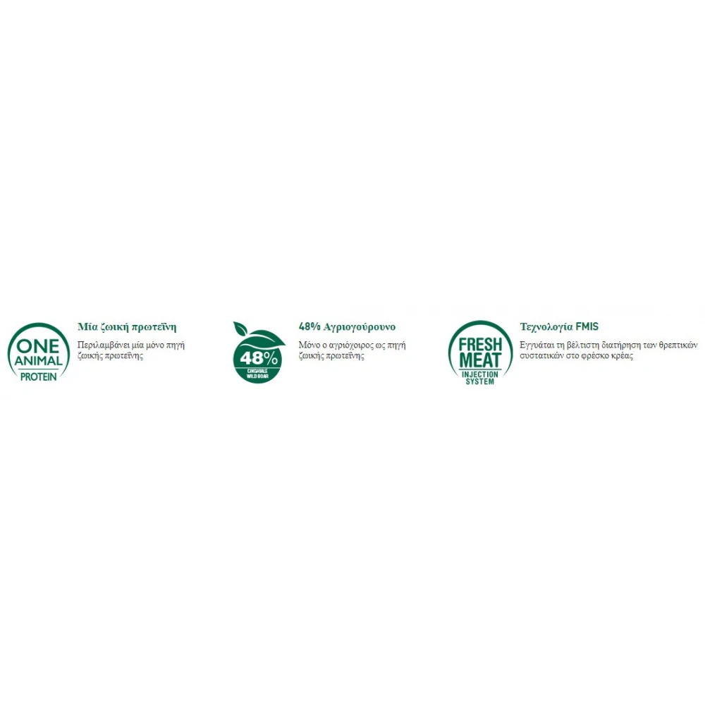 ΣΥΝΘΕΣΗ: φρέσκο αγριόχοιρο 30%, ρύζι, αφυδατωμένο αγριόχοιρο 15%, μπιζέλια, ζωικό λίπος, υδρολυμένο αγριόχοιρο 3%, πολτός τεύτλων 3%, μέταλλα, μαγιά μπύρας 1%, λιναρόσπορος, ιχθυέλαιο, ινουλίνη 1.000 mg/kg (φρουκτο- πηγή ολιγοσακχαριτών), τζίντζερ, μαννάνη-ολιγοσακχαρίτες 1.000 mg/kg, Mojave yucca 170 mg/kg.