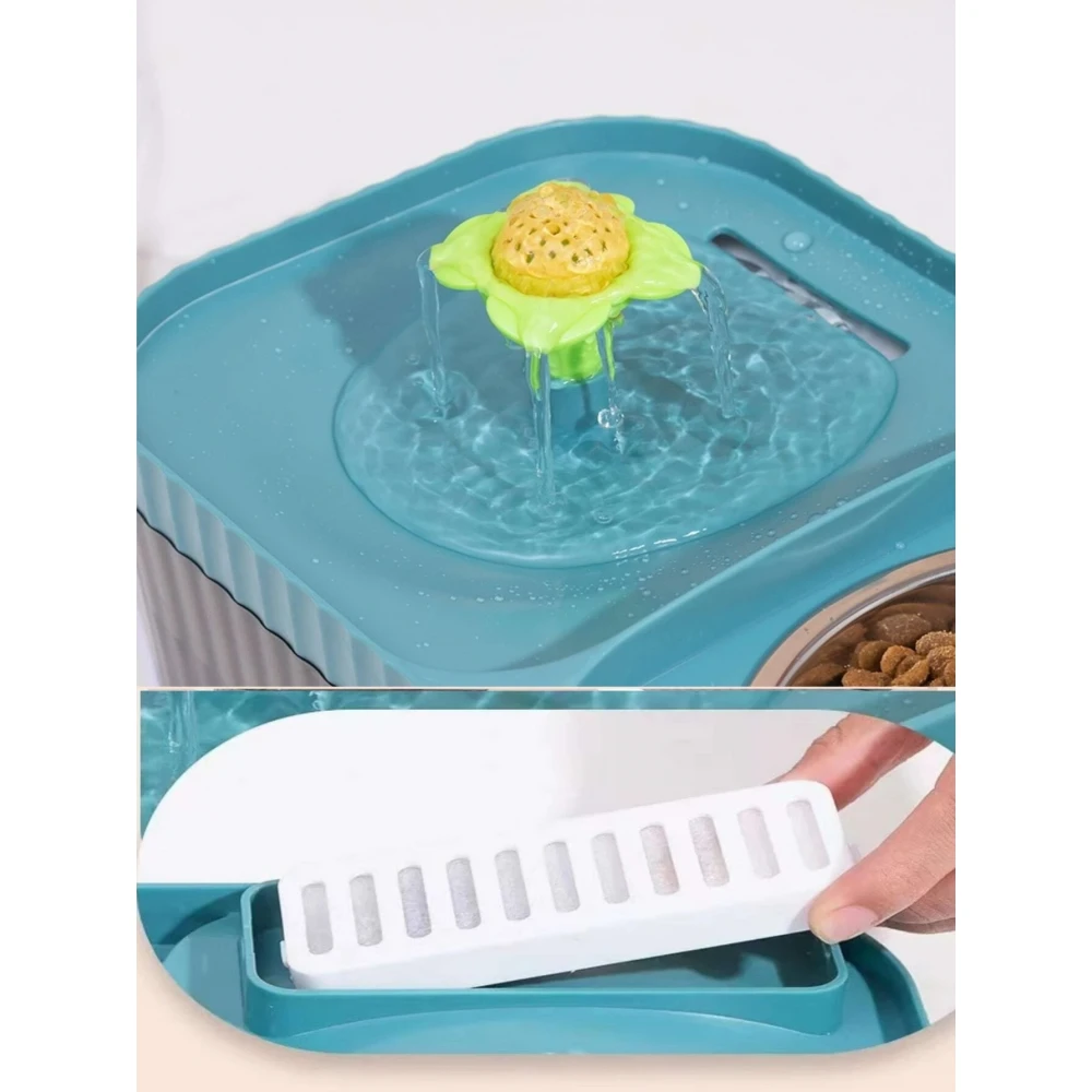 Αυτόματη Ποτίστρα Συντριβάνι και Μπολ Φαγητού για σκύλους και γάτες 3lt Πράσινο.
