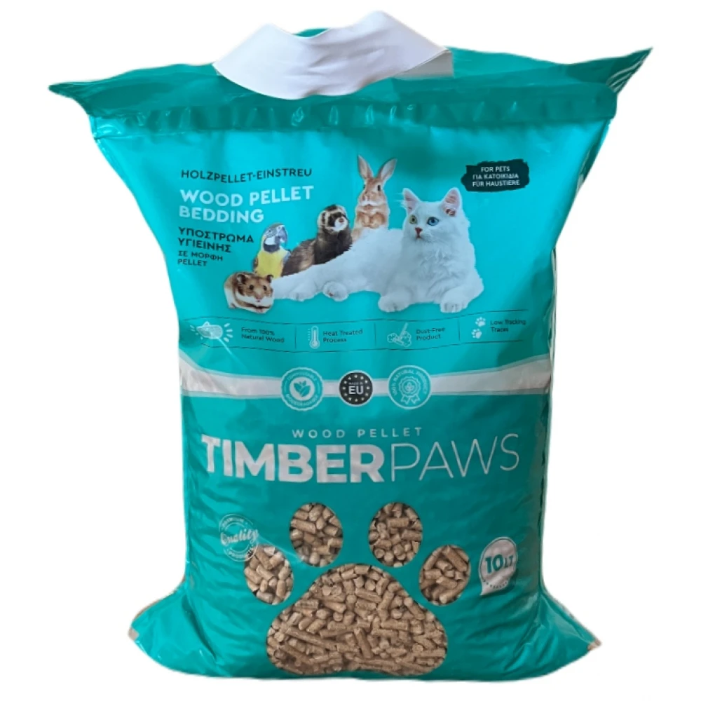 Υπόστρωμα, Pellet Γάτας και Μικρών Ζώων (κουνέλια, τσιντσιλά, ινδικά χοιρίδια κτλ) TimberPaws 10lt (5,5kg).