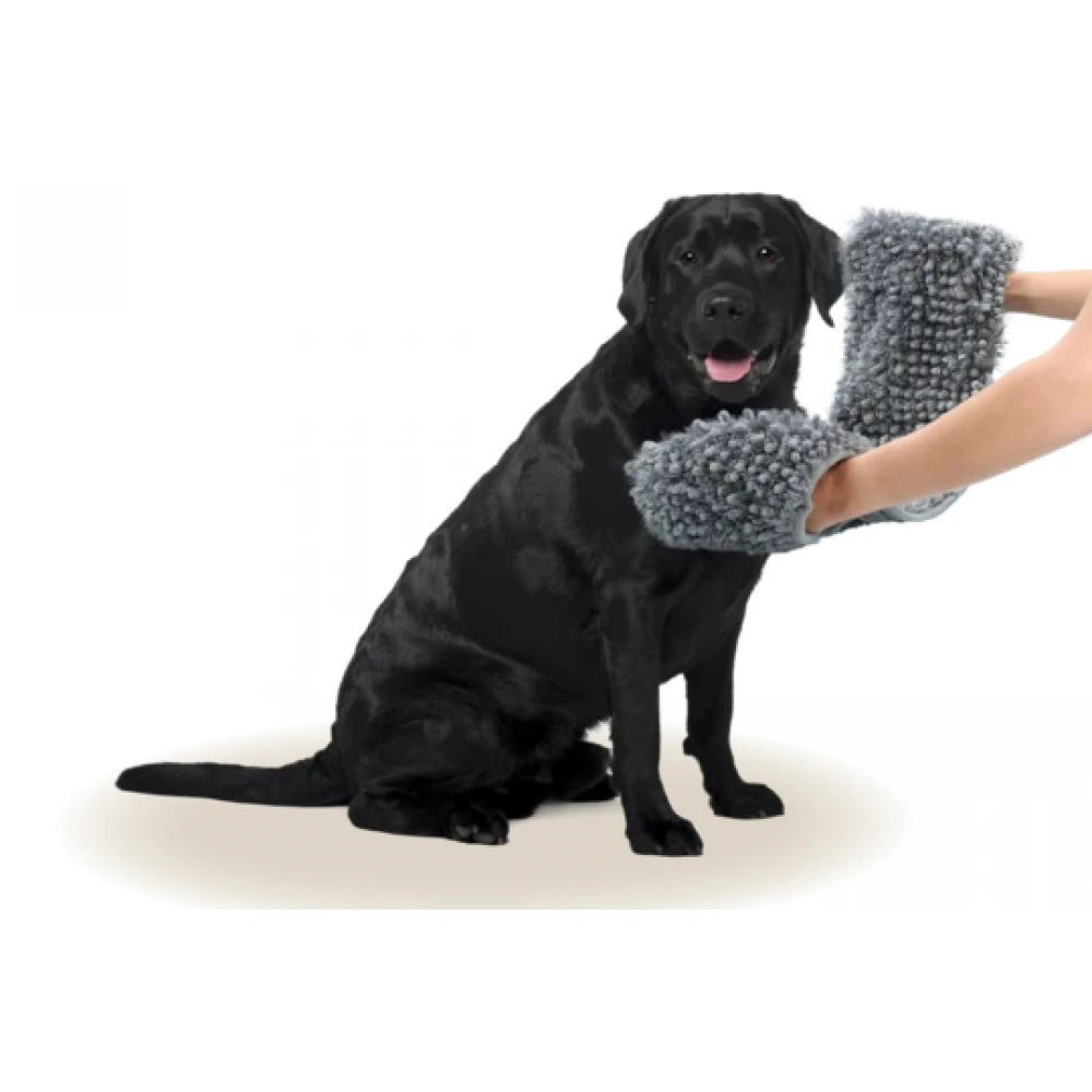 Λόγω του μοναδικού σχεδιασμού του, μπορείτε να τοποθετήσετε τα χέρια σας στην πετσέτα. Αυτό σας επιτρέπει να ελέγχετε βέλτιστα το σκυλί σας ενώ στεγνώνετε, χωρίς να λερωθείτε.