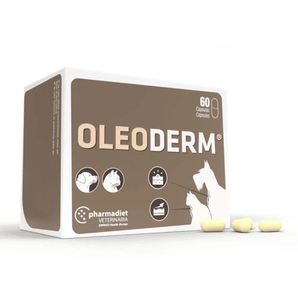 Συμπλήρωμα διατροφής, με σύνθεση που βασίζεται σε ιχθυέλαιο με μεγάλη περιεκτικότητα σε EPA (Εικοσιπενταενοϊκό οξύ) και DHA (εικοσιδυαεξαενοϊκό οξύ), έλαιο μποράντζας πλούσιο σε GLA (γ-λινολενικό οξύ) και LA (Λινελαϊκό οξύ), ψευδάργυρο και βιταμίνες της ομάδας Β (B1, B2, B5, B6, B12, φολικό οξύ και βιοτίνη). Ενδείκνυται για τον έλεγχο των δερματικών διαταραχών σε σκύλους και γάτες, όταν οι εν λόγω διαταραχές συνοδεύονται από φλεγμονή, κνησμό, ερύθημα, ξηρότητα, υπερκεράτωση, αλωπεκία και άλλα δερματικά προβλήματα. Τα EPA και DHA μειώνουν τη σύνθεση εικοσανοειδών που φέρουν τη μεγαλύτερη ευθύνη για τις φλεγμονές και καθιστούν δυνατή τη βιοσύνθεση εικοσανοειδών του κεντρικού νευρικού συστήματος, προωθώντας την ήρεμη συμπεριφορά και ευνοώντας την επέλαση, διατήρηση και ποιότητα του ύπνου. Επιπλέον, το βαλεριανικό οξύ αναστέλλει την επαναπρόσληψη και καταστροφή του GABA, αυξάνοντας τη συγκέντρωσή του στο συναπτικό κενό και τη μετάδοσή του. Το εκχύλισμα βαλεριάνας ενδείκνυται επίσης για τη χαλάρωση των λείων μυών, για χρήση ως αντικαταθλιπτικό και για το μετριασμό των διαταραχών του ύπνου. Η βιτεξίνη, που προέρχεται από το εκχύλισμα του καρπού του φυτού πασιφλόρα, διαθέτει αγχολυτική επίδραση και χρησιμοποιείται για την αντιμετώπιση των διαταραχών του ύπνου, της νευρικότητας και του άγχους. Επηρεάζει τους υποδοχείς του GABA, καθώς αυξάνει τη μετάδοσή του. Η ινοσιτόλη είναι μια πολυαλκοόλη που μειώνει το άγχος, λειτουργώντας ως δευτερεύων διαβιβαστής στο μονοπάτι μεταγωγής σήματος της σεροτονίνης. μυός, των αιμοπεταλίων και των λευκών αιμοσφαιρίων. Ο ψευδάργυρος συμβάλλει στην πρόληψη τριχόπτωσης, σχηματισμού κρούστας, ερυθήματος, φλεγμονής και κνησμού. Τα λιπαρά οξέα Ω3 εμποδίζουν τη σύνθεση ουσιών που προάγουν τη φλεγμονή, όπως οι προσταγλανδίνες και τα λευκοτριένια, ενισχύοντας την ανάπτυξη δυνατού τριχώματος και προστατεύοντας το δέρμα. Οι βιταμίνες της ομάδας Β βοηθούν στην ενδυνάμωση του δέρματος και του τριχώματος. σκύλου. Επιπλέον, επιτρέπει τη σωστή ανανέωση των επιδερμικών κυττάρων και τη διατήρηση του δέρματος σε καλά επίπεδα. Ο ψευδάργυρος συμβάλλει στην πρόληψη τριχόπτωσης, σχηματισμού κρούστας, ερυθήματος, φλεγμονής και κνησμού. Τα λιπαρά οξέα Ω3 εμποδίζουν τη σύνθεση ουσιών που προάγουν τη φλεγμονή, όπως οι προσταγλανδίνες και τα λευκοτριένια, ενισχύοντας την ανάπτυξη δυνατού τριχώματος και προστατεύοντας το δέρμα. Οι βιταμίνες της ομάδας Β βοηθούν στην ενδυνάμωση του δέρματος και του τριχώματος. με μικρότερη ή μηδενική φλεγμονώδη δράση. Το GLA αυξάνει τη βιοσύνθεση αντιφλεγμονωδών εικοσανοειδών (PGE1 και 15-HETE). Είναι ένα απαραίτητο αμινοξύ που διατηρεί την ακεραιότητα του δέρματος. Το LA είναι ένα απαραίτητο αμινοξύ που βοηθά στη σωστή λειτουργία της κεράτινης στιβάδας του δέρματος, λειτουργώντας ως προστατευτικός φραγμός που περιορίζει τη διαδερμική απώλεια ύδατος. Ο ψευδάργυρος και οι βιταμίνες της ομάδας Β είναι απαραίτητα συστατικά για τη διατήρηση της υγείας του δέρματος και του τριχώματος. Η έλλειψη αυτών των συστατικών μπορεί να οδηγήσει σε αλωπεκία, ερύθημα, σχηματισμό κρούστας και κνησμό.