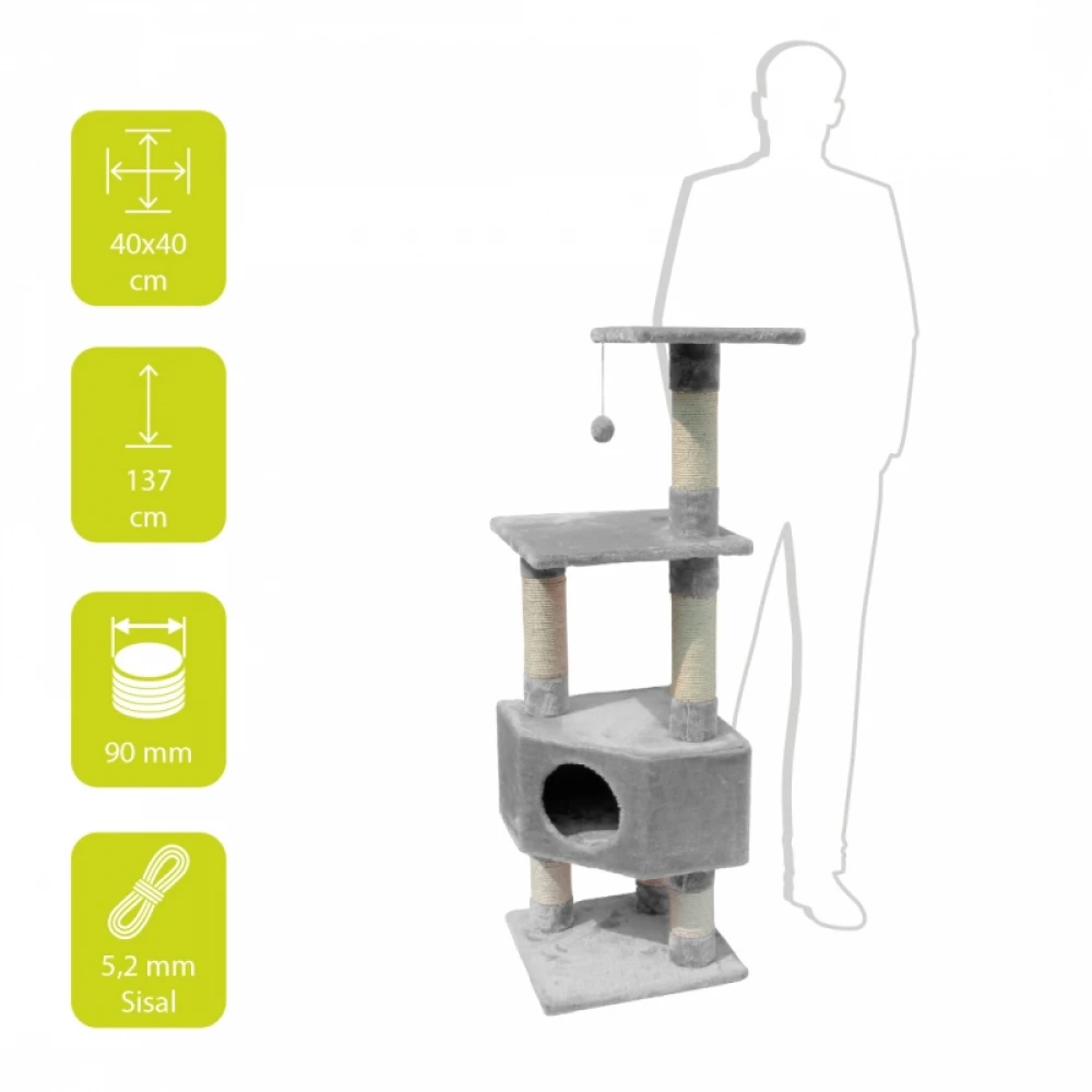 Μια στιβαρή πλάκα βάσης, στο 1ο επίπεδο είναι ένα όμορφο σπίτι για γάτες στο οποίο η γάτα σας μπορεί να αποσυρθεί.