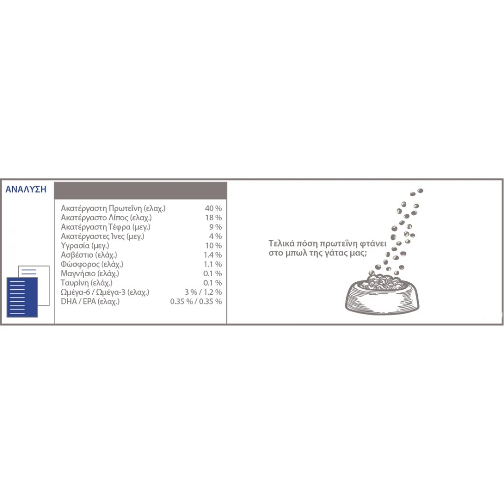 ΘΕΡΜΙΔΙΚΗ ΚΑΤΑΝΟΜΗ (υπολογιζόμενη): Η Μεταβολιστέα Ενέργεια είναι 3980 kcal/kg (517 kcal ανά κούπα 130gr).