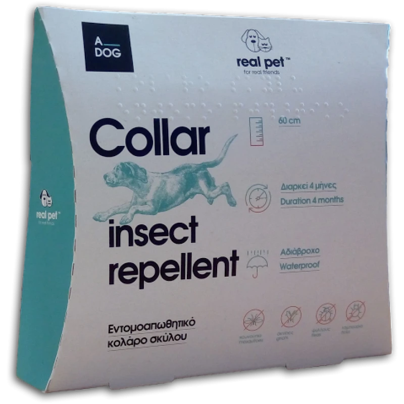 Το κολάρο σκύλου της Real Pet περιέχει το ενεργό συστατικό φυτικής προέλευσης geraniol,που αποτελεί τη νεότερη και πιο αποτελεσματική λύση στην απώθηση των παρασίτων και των εντόμων. Είναι αδιάβροχο,μη τοξικό και δεν επηρεάζει τη φυσιολογία του σκύλου.Προστατεύει αποτελεσματικά από τσιμπούρια,ψύλλους,κουνούπια και σκνίπες,αποτρέποντας τα τσιμπήματα που θα μπορούσαν να επιφέρουν πολυάριθμες σοβαρές ασθένειες όπως η λεϊσμανίαση,η ερλιχίωση,η διροφιλαρίωση και η αλλεργική από ψύλλους δερματίτιδα.