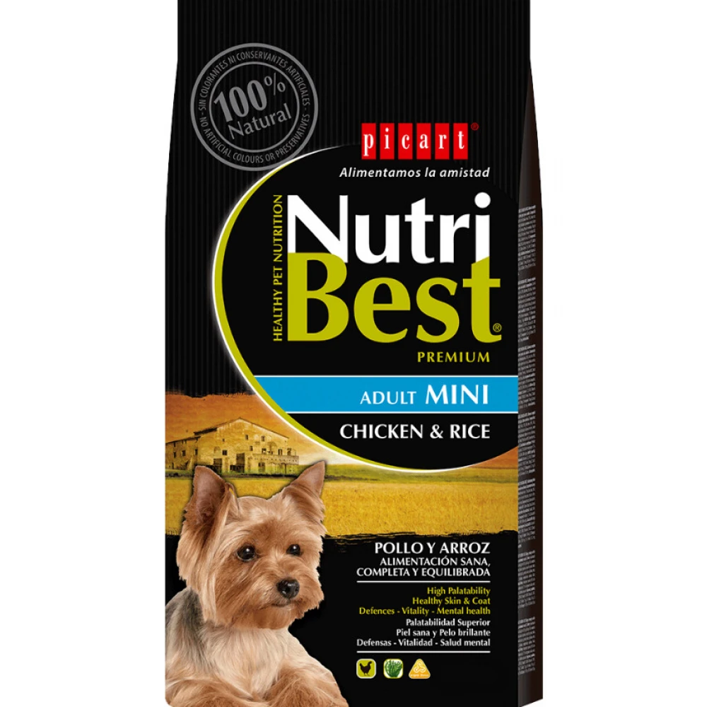 Ξηρά τροφή σκύλου Picart Nutribest Adult Mini 10kg.Πλήρης τροφή με κοτόπουλο και ρύζι για ενήλικους σκύλους μικρού μεγέθους.