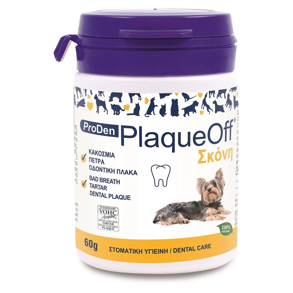 Αν το κατοικίδιο σας υποφέρει από κακοσμία, είναι σίγουρα μια ένδειξη ότι αντιμετωπίζει προβλήματα στοματικής υγιεινής. Μέχρι τώρα το καθημερινό βούρτσισμα ήταν ο μόνος τρόπος για να διατηρήσετε τα δόντια του κατοικίδιου σας καθαρά. Ωστόσο, αυτό μπορεί να είναι δύσκολο να επιτευχθεί. Το ProDen PlaqueOff είναι ένας καινούριος και εύκολος τρόπος για να βελτιώσετε την στοματική υγιεινή του κατοικίδιου σας.