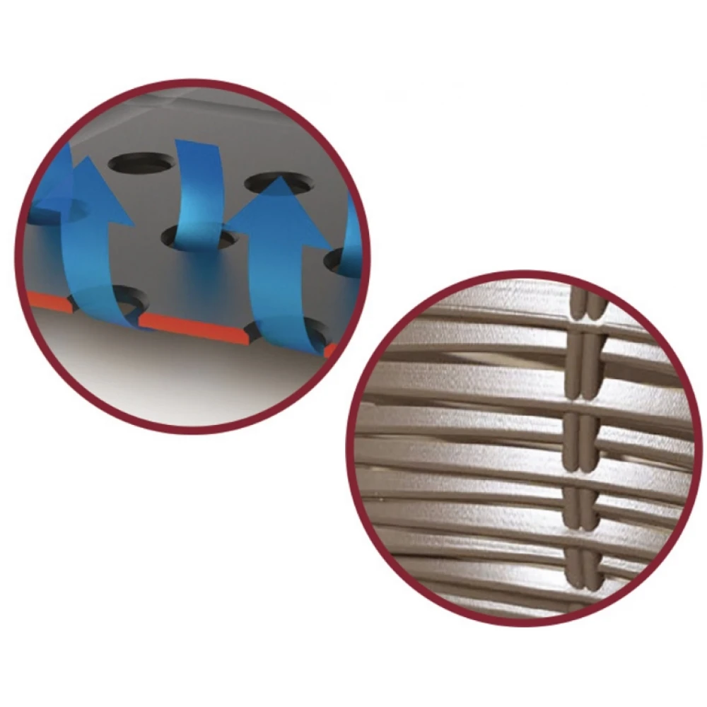 Κομψό πλαστικό κρεβάτι με πλεκτή υφή (rattan) και ένθετο μαξιλάρι, ιδανικό για γάτες και μικρού μεγέθους σκύλους. Ο ειδικός σχεδιασμός του το καθιστά πραγματικό στοιχείο διακόσμησης στο σπίτι. Διαθέτει βάση που ‘αναπνέει’ για καλύτερη και πιο άνετη ανάπαυση.