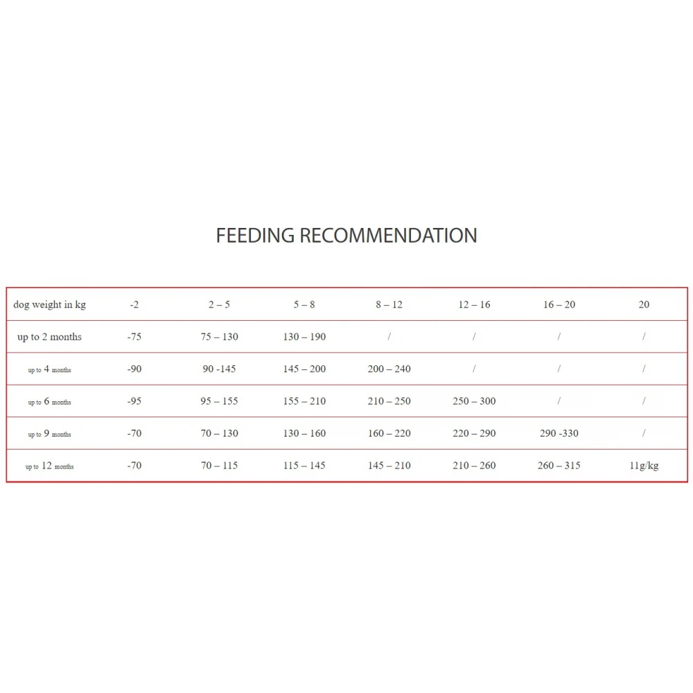 Αφού το κουτάβι τραφεί με την G2 (έως την ηλικία των 6-8 εβδομάδων), προχωρήστε σε διατροφή με PUPPY MINI μέχρι το τέλος της νεαρής ηλικίας (έως την ενηλικίωση).