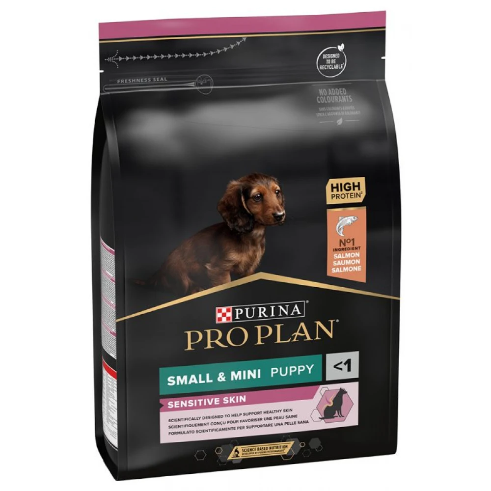 Η ξηρά τροφή PRO PLAN Small & Mini Puppy Sensitive Skin OPTIDERMA είναι μια πλήρης τροφή για σκύλους.