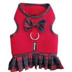 Σαμαράκι Γιλέκο Σκύλου Mesh Harness Φούστα Κόκκινο Καρό Xs 10×28-40cm