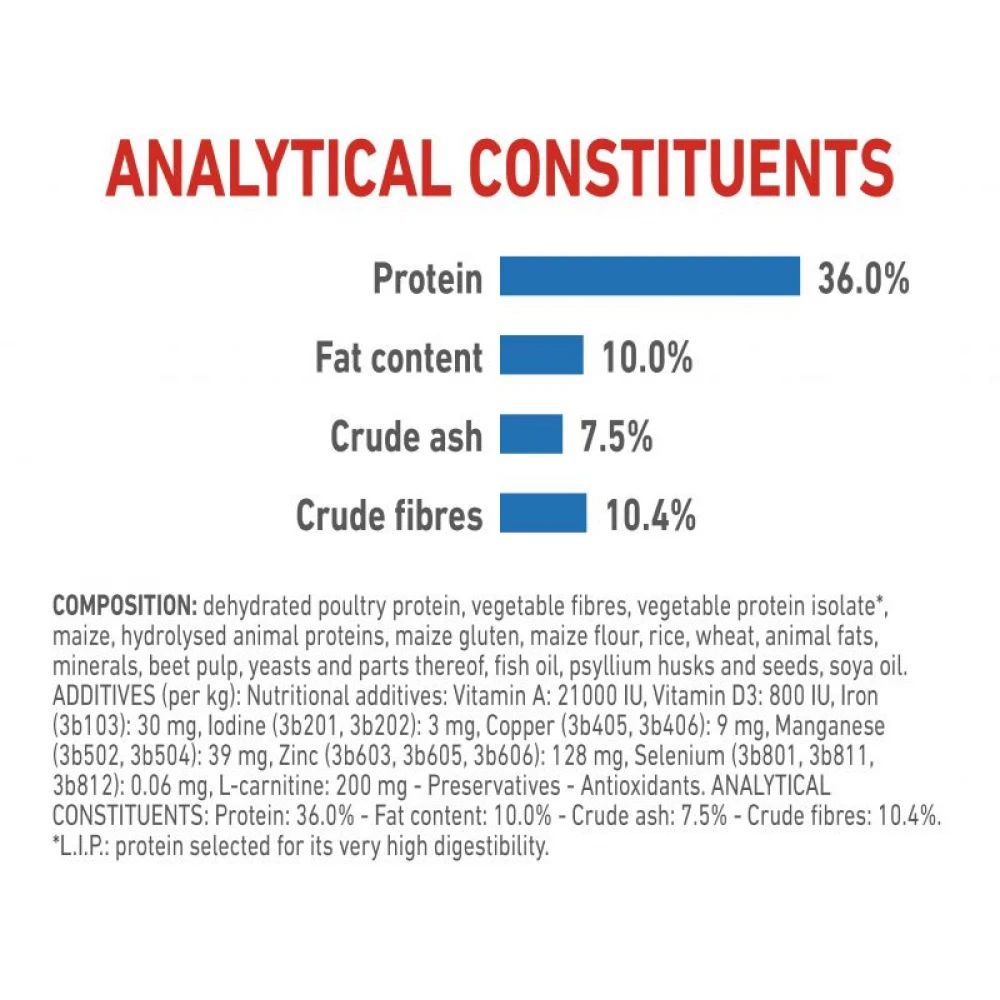 * L.I.P. – Ένδειξη ποιότητας: επιλεγμένες, εύπεπτες πρωτεΐνες υψηλής βιολογικής αξίας για βέλτιστη πέψη.