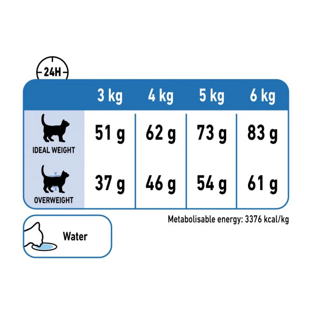 Η Royal Canin Light Weight Care μπορεί με την ειδική σύνθεσή της να βοηθήσει τη γάτα σας να χάσει βάρος. Η κατανάλωση μόνο αυτής της τροφής έχει αποδειχθεί ότι μειώνει την πρόσληψη θερμίδων κατά 17%. Η υψηλή περιεκτικότητα σε πρωτεΐνες και η χαμηλή περιεκτικότητα σε λιπαρά μπορεί επίσης να συμβάλλει στη μείωση του βάρους και παράλληλα στη διατήρηση της μυϊκής μάζας. Οι φυσικές ίνες και το ψύλλιο μπορούν επίσης να αυξήσουν το αίσθημα κορεσμού της γάτας σας και έτσι να μειώσουν με φυσικό τρόπο την αυθόρμητη πρόσληψη τροφής.