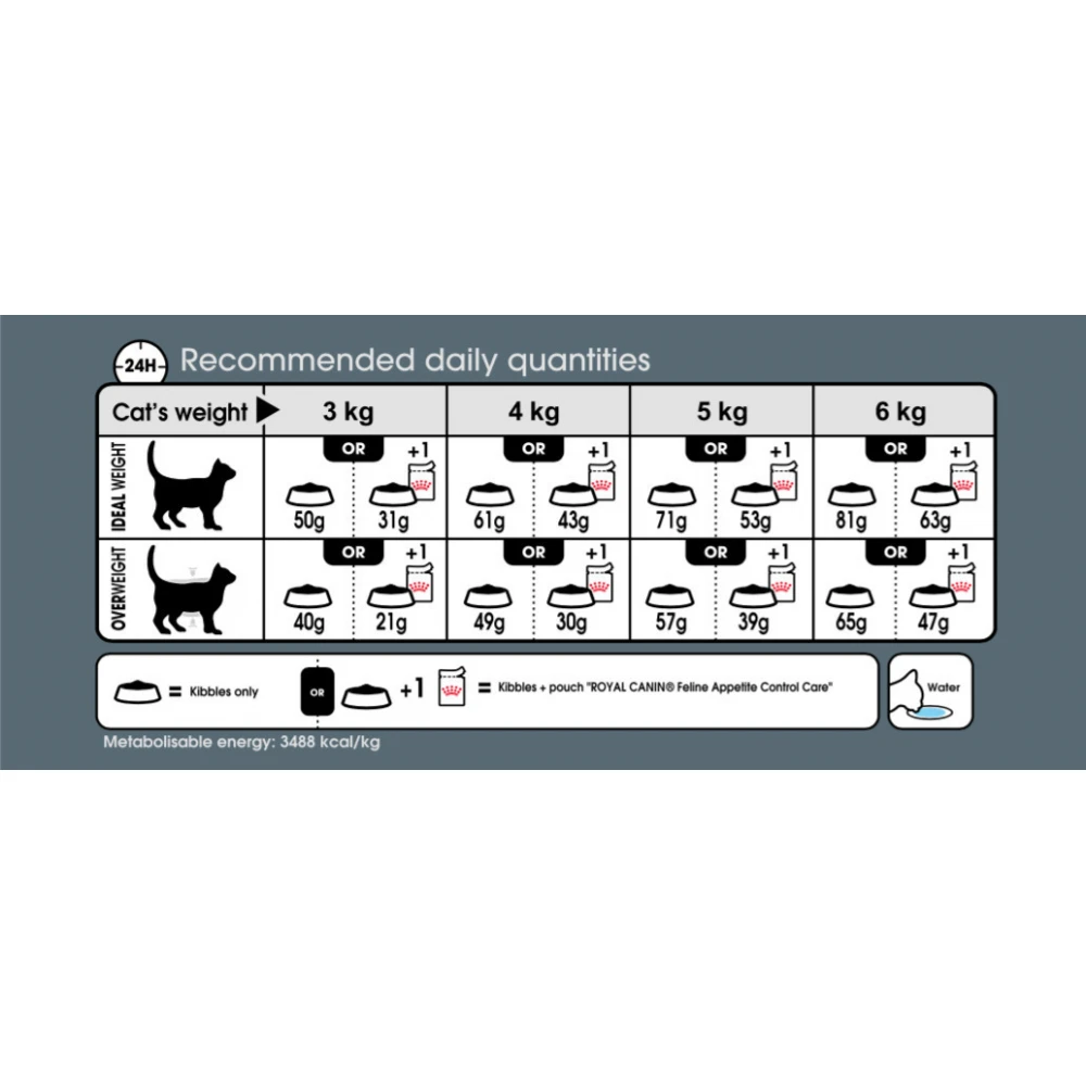 - Αποδεδειγμένα αποτελέσματα*: το 90% των ιδιοκτητών γάτας επιβεβαίωσε ότι η γάτα τους μείωσε τη συμπεριφορά «επαιτείας» μετά από 4 εβδομάδες σίτισης* Εσωτερική έρευνα της Royal Canin