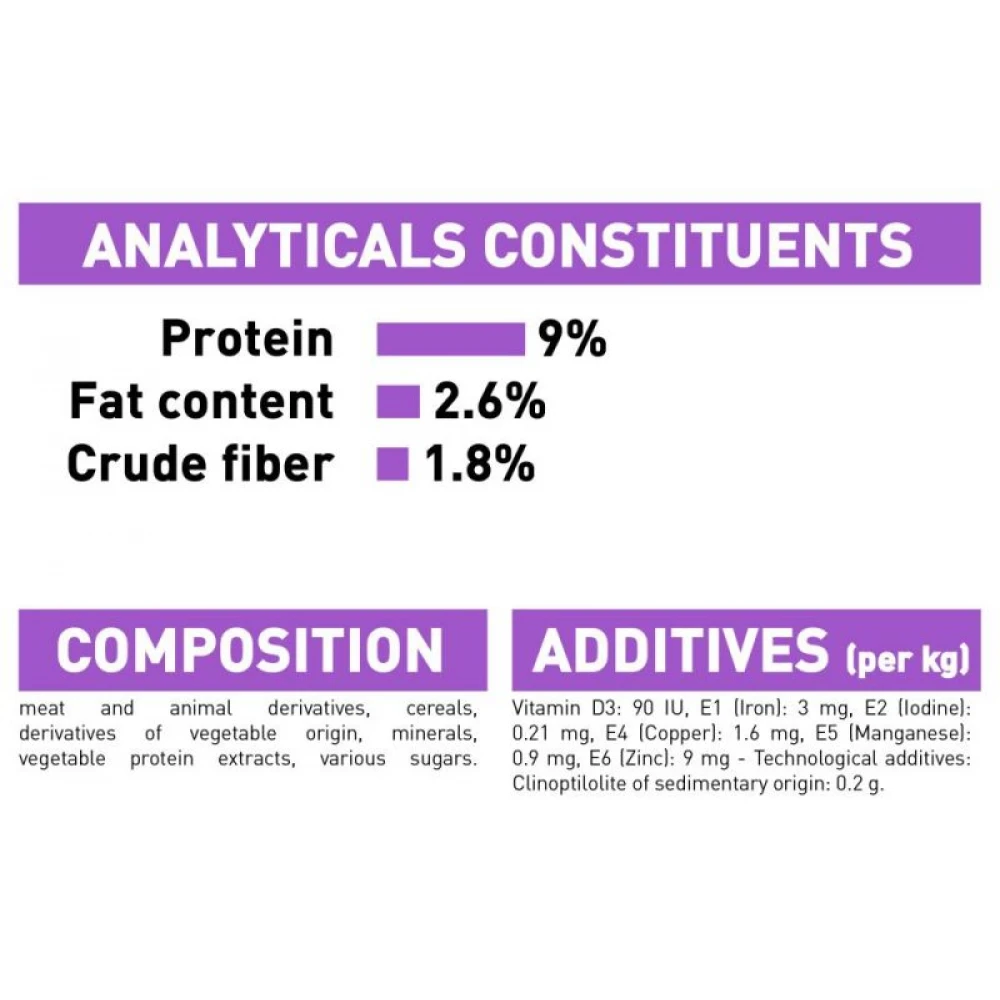 Η προσαρμοσμένη περιεκτικότητα σε μέταλλα μπορεί με τη σειρά της να προάγει ένα υγιές ουροποιητικό σύστημα. Τελικά, η διακριτική γεύση φροντίζει, ώστε ακόμη και οι επιλεκτικές γάτες να κορδώνονται για το μπολ.