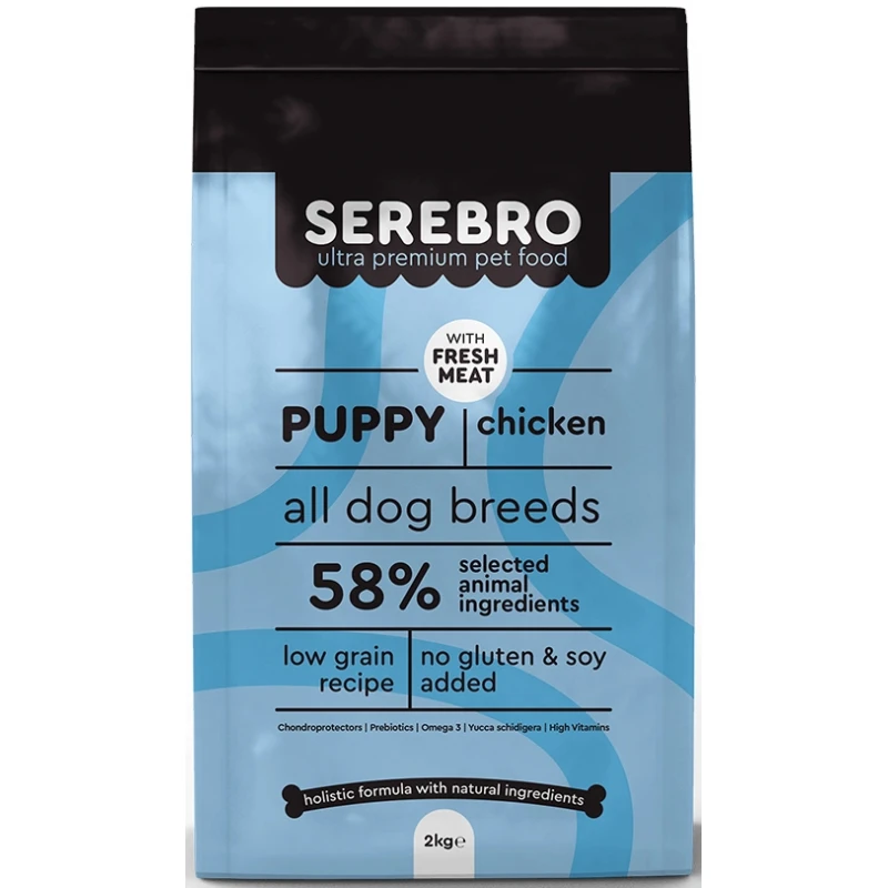 Ξηρά τροφή σκύλου Serebro Puppy 2kg με κοτόπουλο. Ξηρά Τροφή για Κουτάβια με Λίγα Σιτηρά.